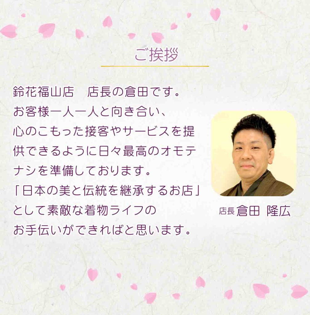 広島県福山市の着物販売店、ゆめタウン福山店2Fの鈴花福山店です。