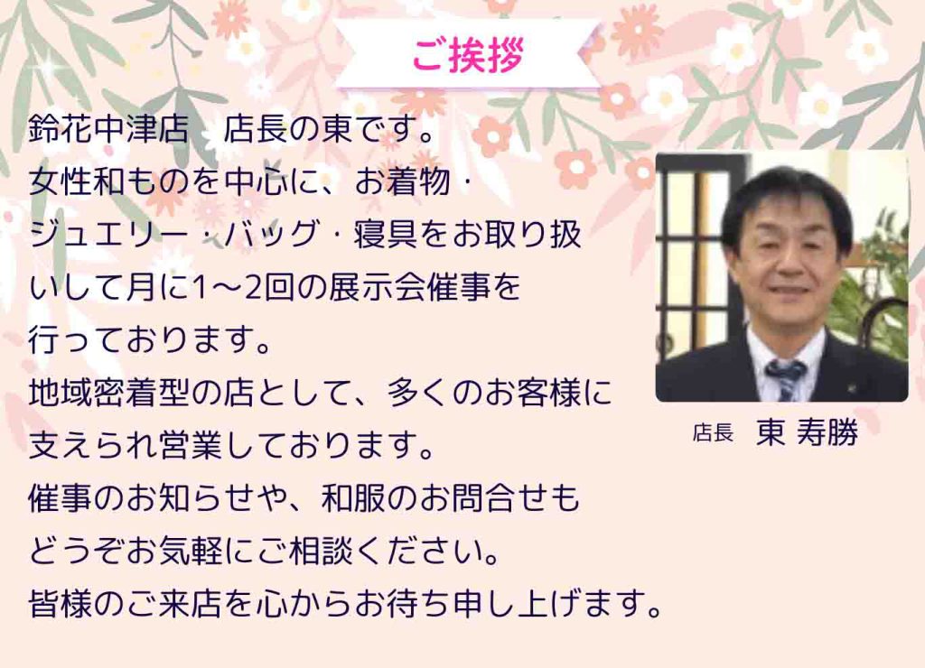 大分県中津市の着物販売店、鈴花中津店です。