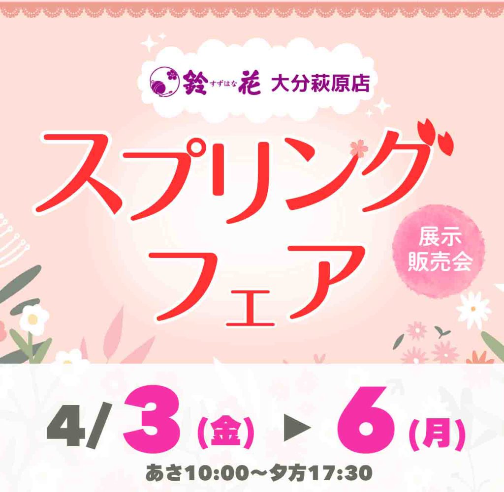 今回はバッグ・コート、寝具(天照石布団)がメインの展示販売会「スプリングフェア」のご案内です。
