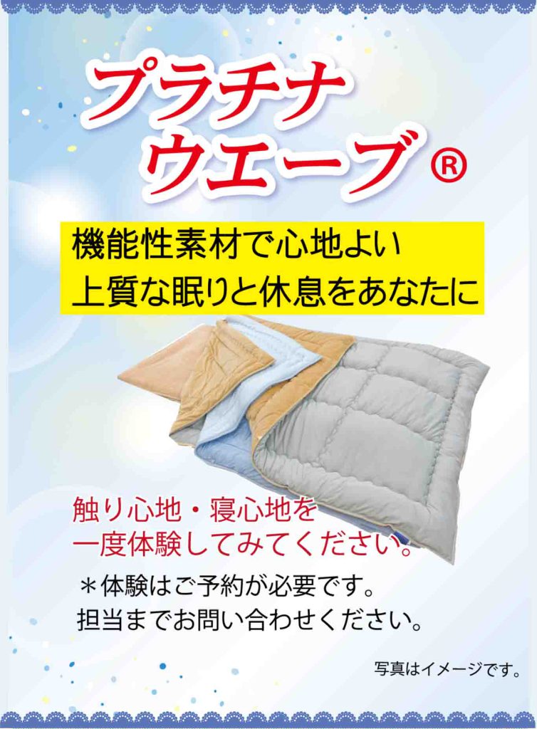 今回はバッグ・コート、寝具(プラチナウェーブ)がメインの展示販売会「ファッション展」のご案内です。