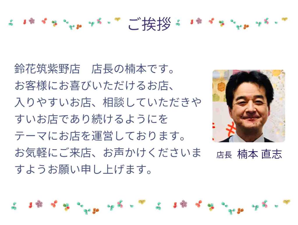 福岡県筑紫野市の着物販売店、ゆめタウン筑紫野2Fの鈴花筑紫野店です。