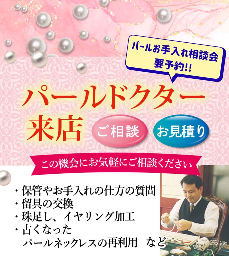 パールドクター来店!パール専門の職人が来店し、皆様がお持ちのパールについてご相談承ります!