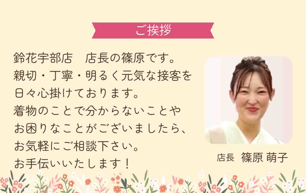 山口県宇部市の着物販売店、フジグラン宇部店1Fの鈴花宇部店です。