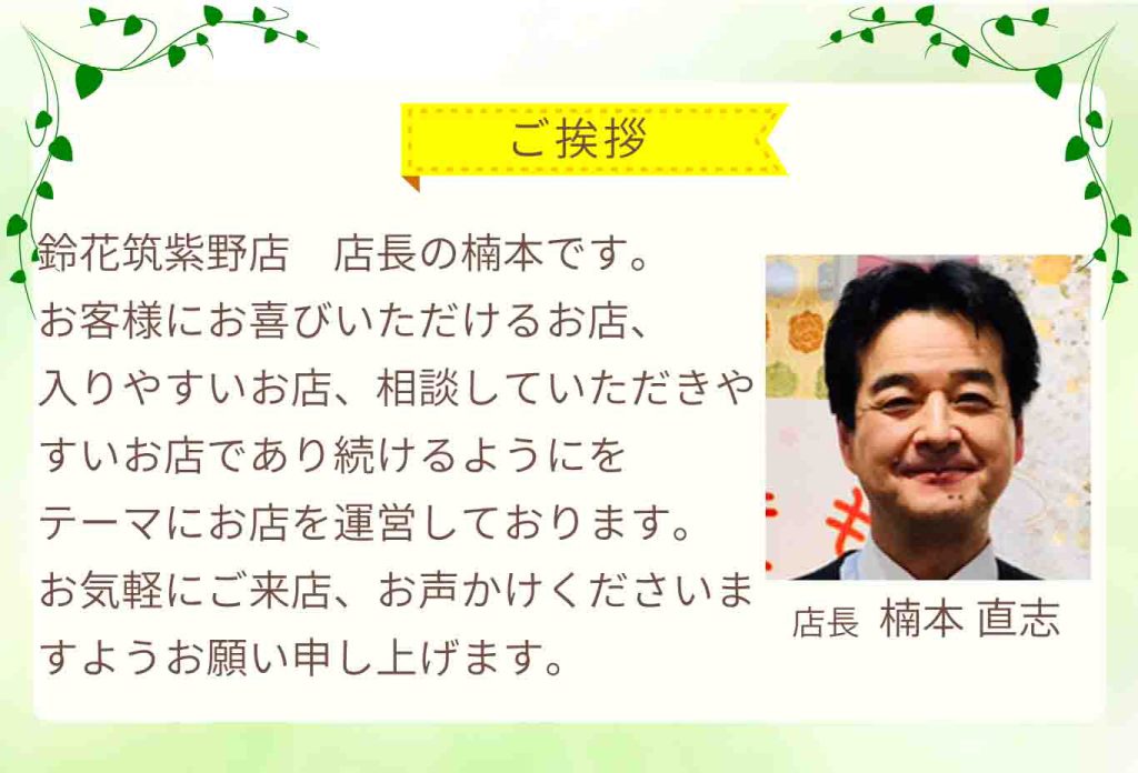 福岡県筑紫野市の着物販売店、ゆめタウン筑紫野2Fの鈴花筑紫野店です。