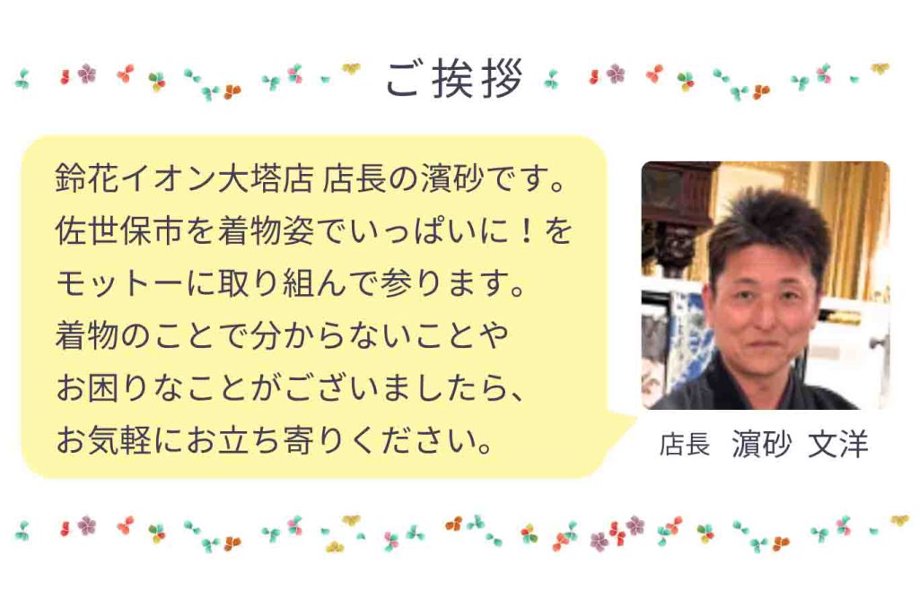 長崎県佐世保市の着物販売店、イオン大塔店2Fの鈴花鈴花大塔店です。