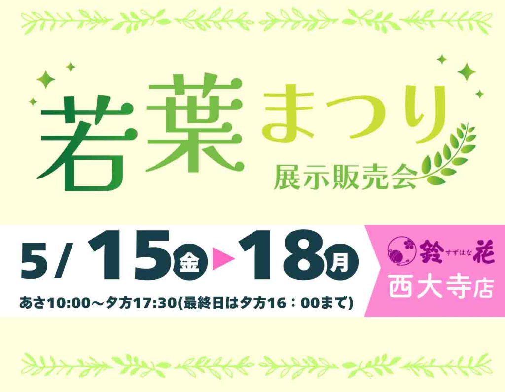 今回は、着物(松美庵)、寝具(ローズテクニー)がメインの展示販売会「若葉まつり」のご案内です。